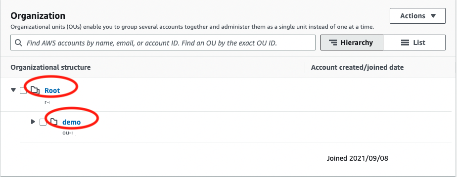 - Provide the OU ID (r- for full organization or ou- for partial scope)