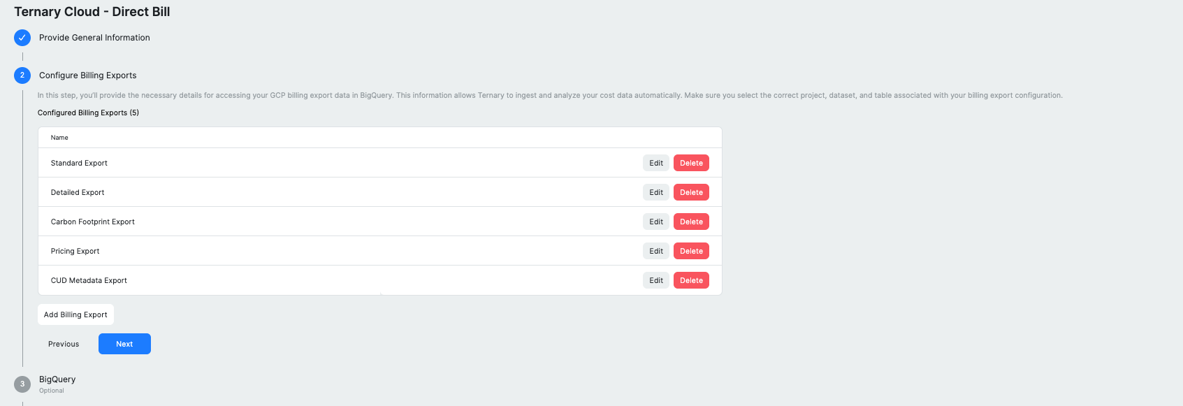 - Alignment between GCP Billing Exports, BigQuery and Ternay (UI) platform