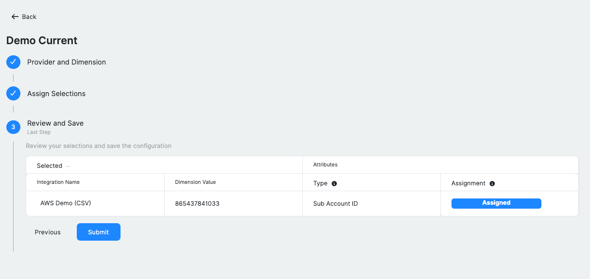 - Confirm the Cloud Provider, Dimension, and all selected Sub Accounts.