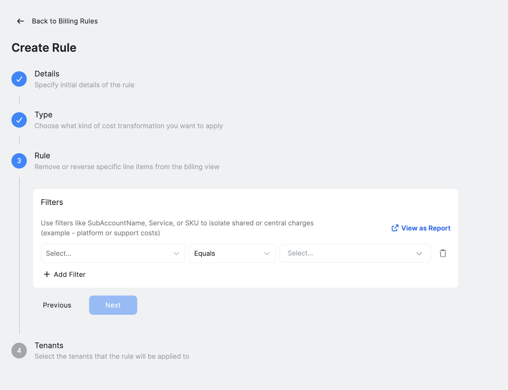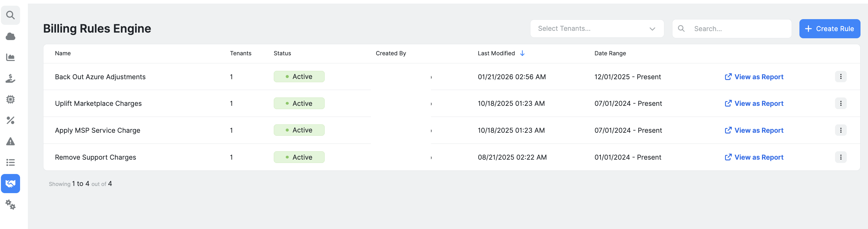 - Creating multiple billing rules per tenant or apply rules globally across all tenants