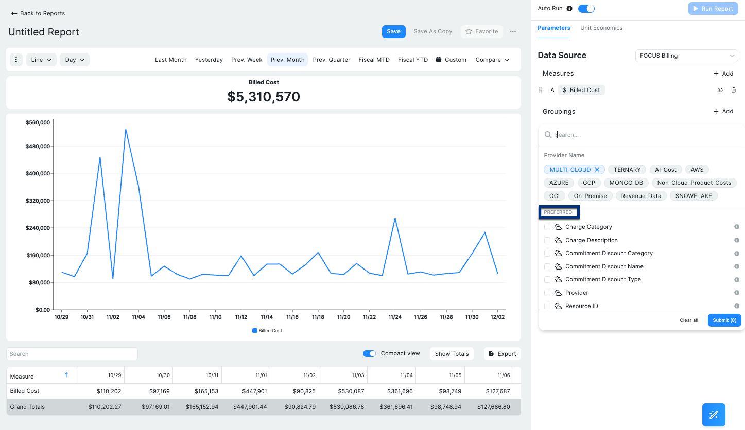 Preferred Labels allow organizations to surface the most relevant labels at the top of selection menus in the Ternary Reporting Engine. This reduces friction when building reports and ensures consistent use of key labels across FinOps, engineering, product, and finance workflows.
